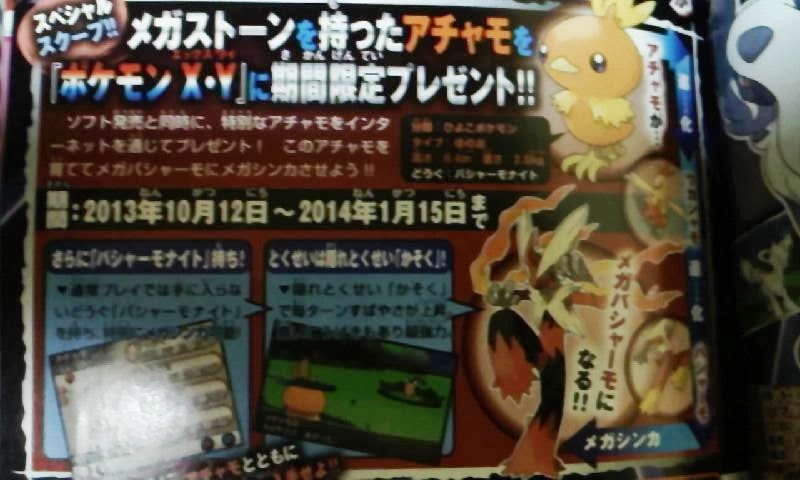 | In Japan gaat er zodra X en Y uit zijn een WiFi Event van start die een Torchic die iets met MegaBlaziken te maken heeft distribueert. |